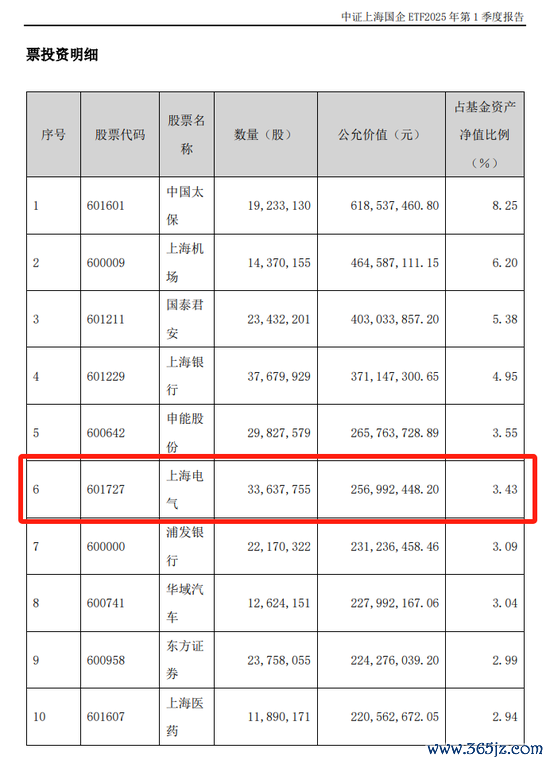 至2025年3月31日,汇添富中证国企ETF持有上海电气的金额大致在2.57亿元,占基金净值比例为3.43%。