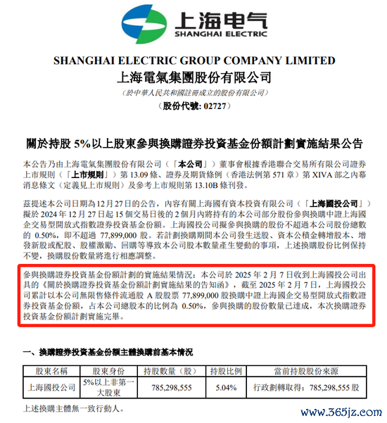 2025年1月24日上海电气公告的换购,其实只是换购的一个开始。到2025年2月7日,上海电气再发公告,披露了整个换购的金额: