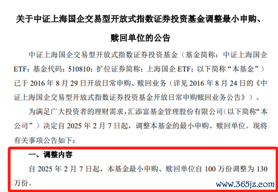 别人在2月7日刚完成ETF换购,汇添富基金在2月7日就调整了最小申赎单位,这真是挺巧合的。而且汇添富上海国企ETF作为一只成立于2016年的老基金,早不调整晚不调整,您非得这时候调整?
